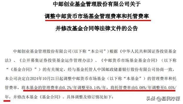网上配资平台开户炒股 #柠檬说基金# 中邮创业基金公告,降低旗下中邮货币基金的管理费和托管